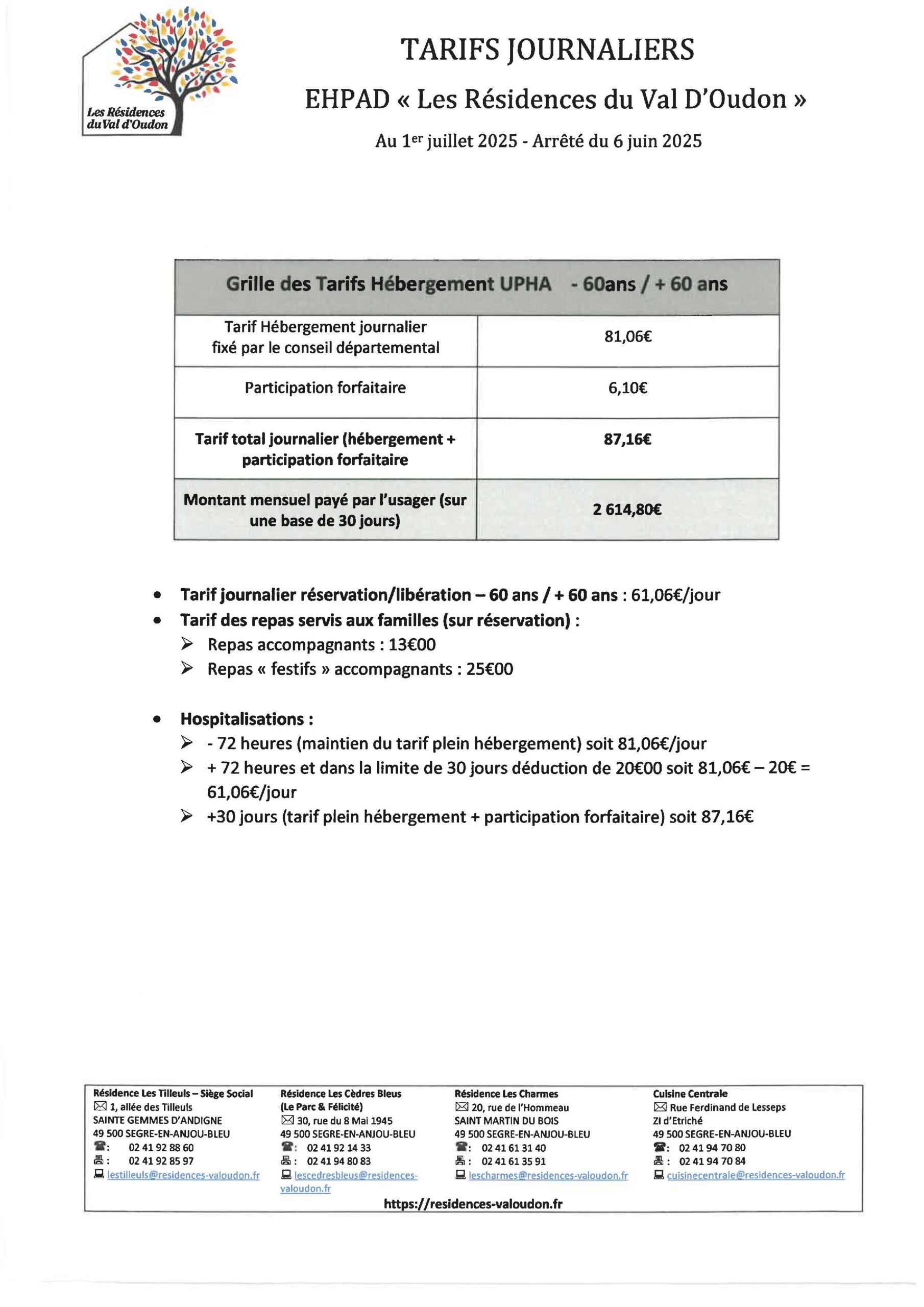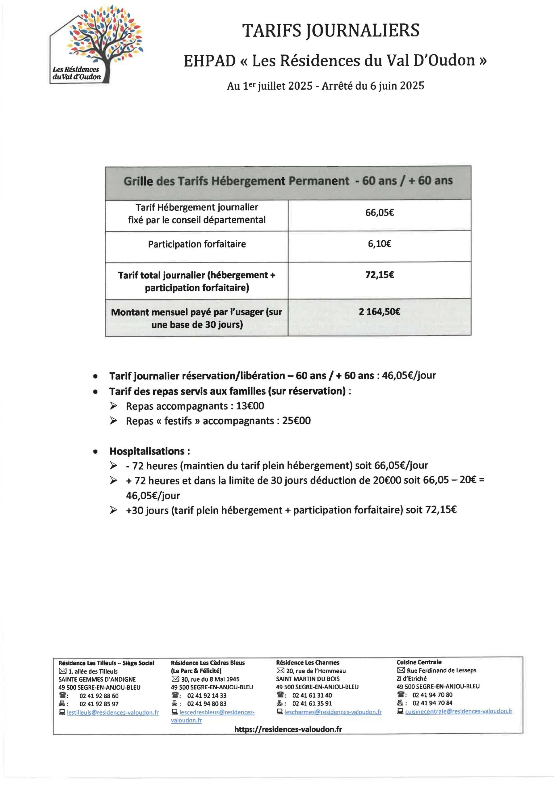 Le tarif du menu du jour est de 9.86€ par personne et le tarif du menu « festif » est de 19.79€ par personne.